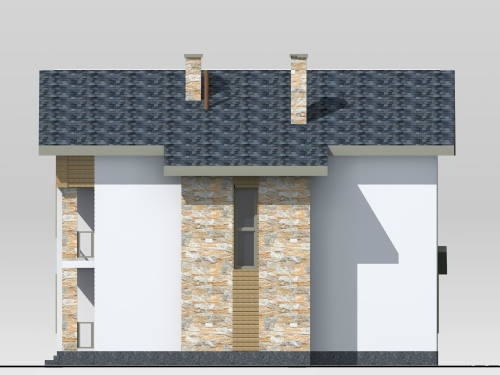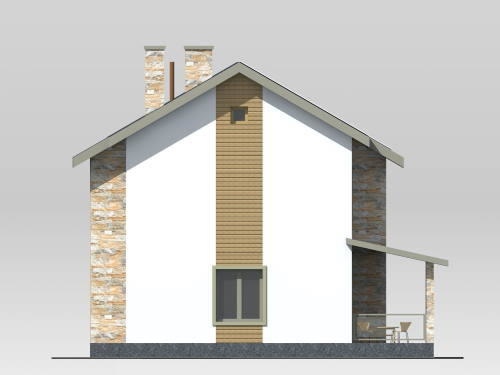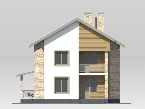 Двухэтажный трехкомнатный дом состоит из следующих помещений. На первом этаже расположены: хозпомещение, санузел, прихожая, кухня и гостиная. Из гостиной предусмотрен выход на крытую террасу.