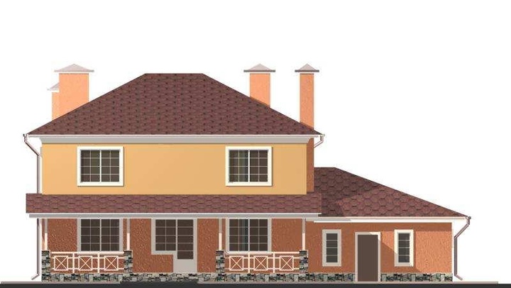 Материалы стен в данном проекте можно легко поменять на керамический блок или кирпич с утеплением.