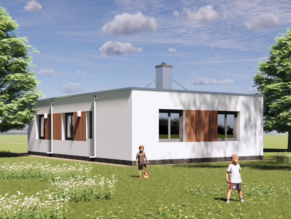 Одноповерховий будинок з трьома спальнями, та кухнею-їдальнею: