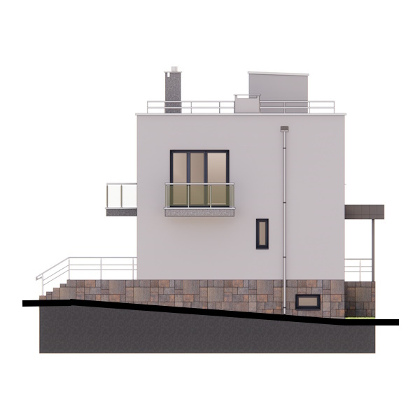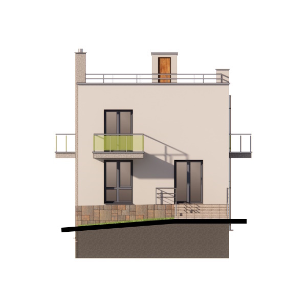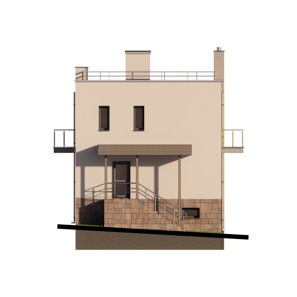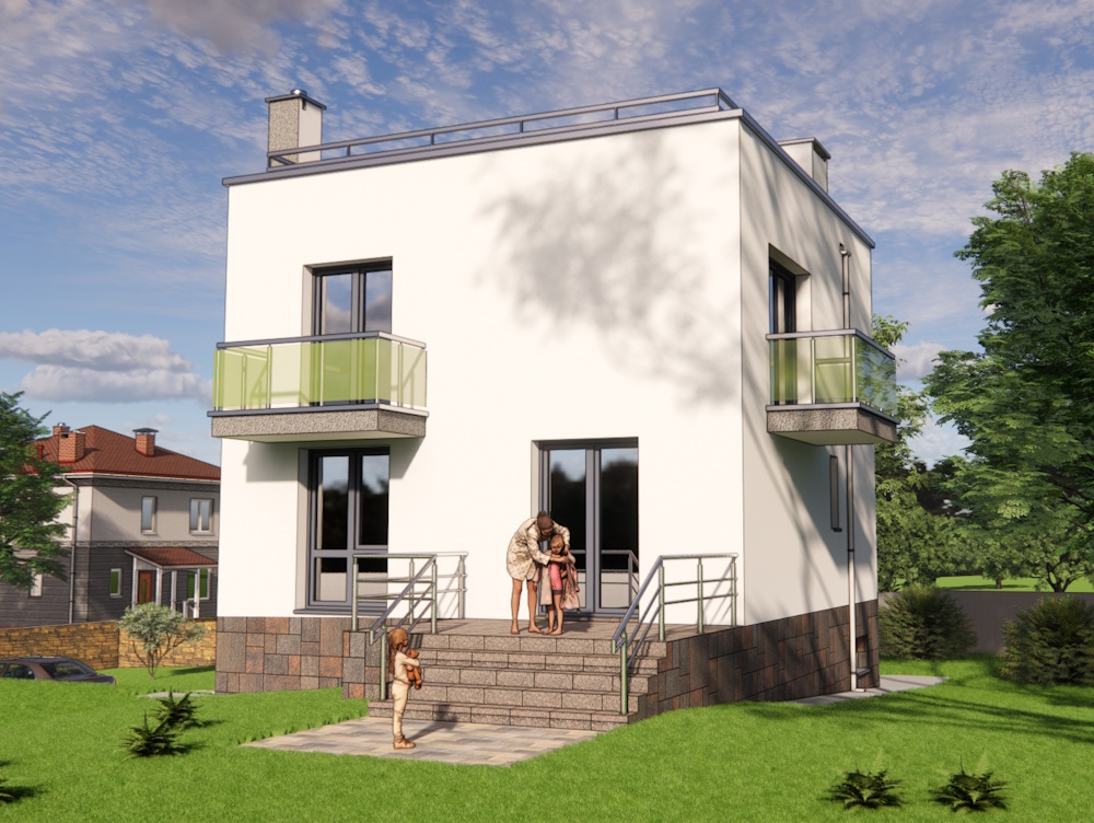 Двоповерховий будинок з плоским дахом і трьома балконами: