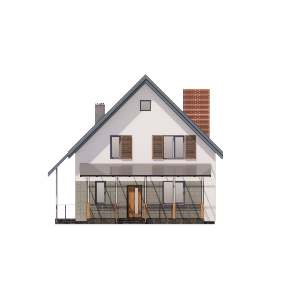 Проект розроблений в двох варіантах. Перший варіант: стіни газоблок, перекриття залізобетонні панелі. Другий варіант: стіни дерев'яний каркас, перекриття дерев’яні.