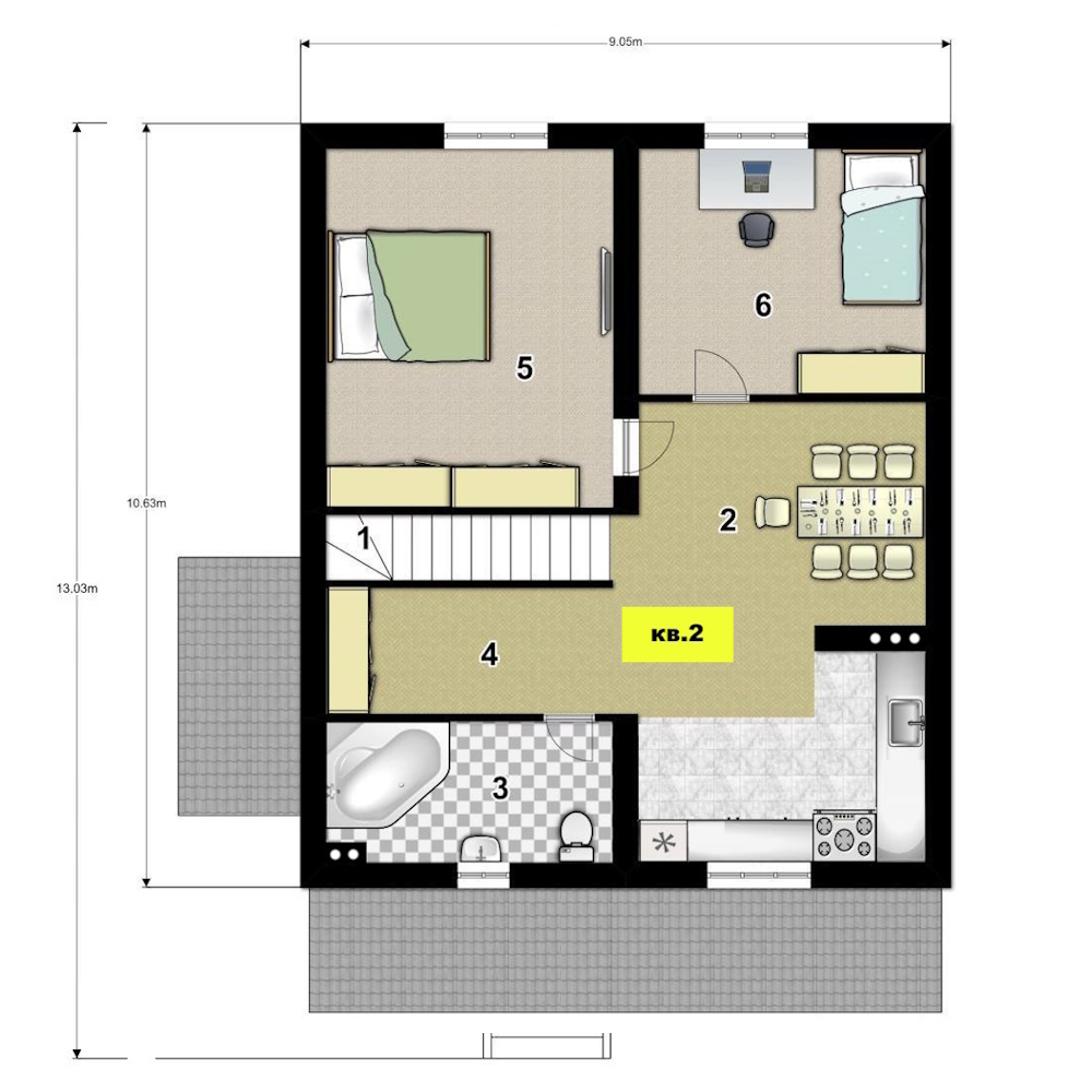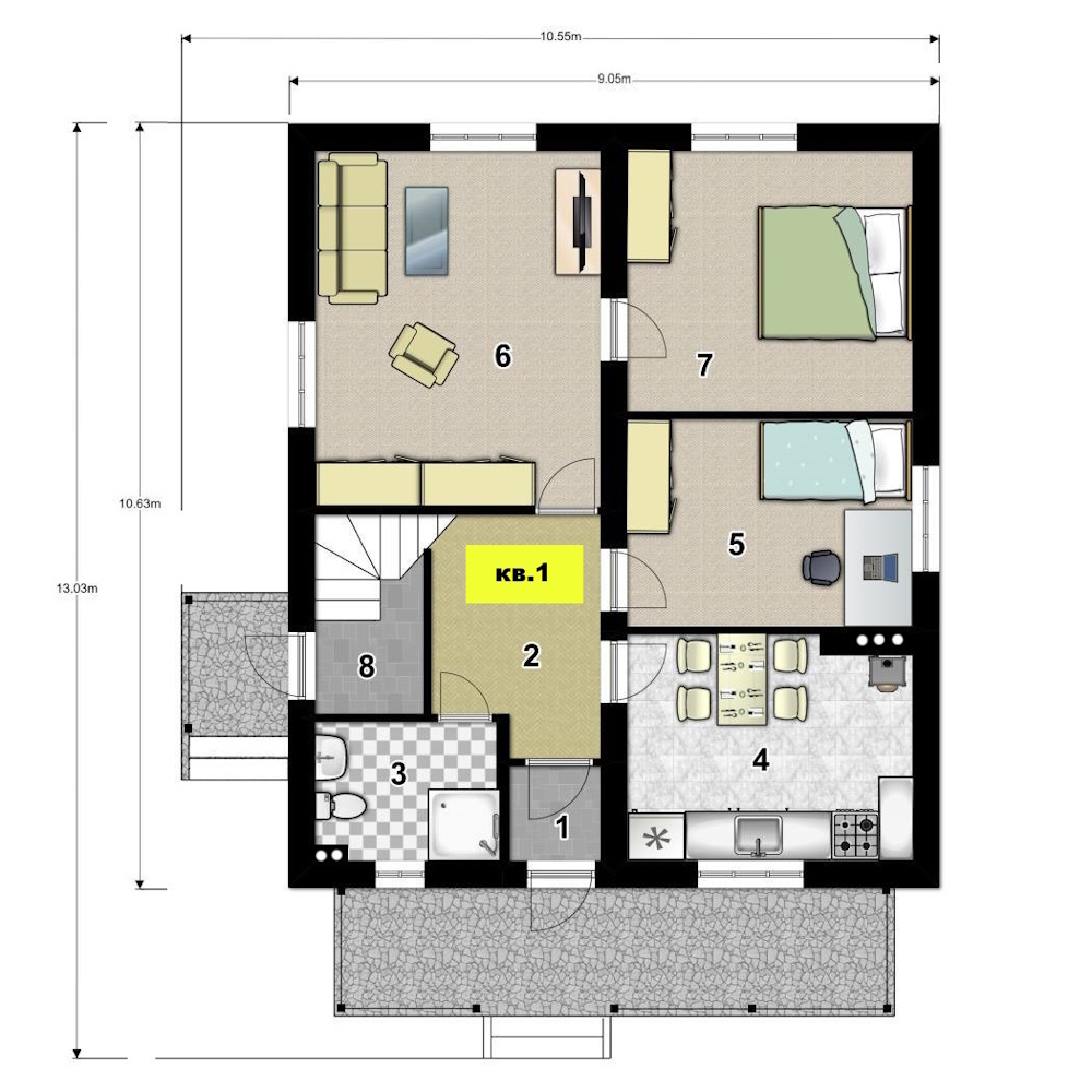 Проекты двоквартирного будинку з розміщенням квартир на кожному поверсі