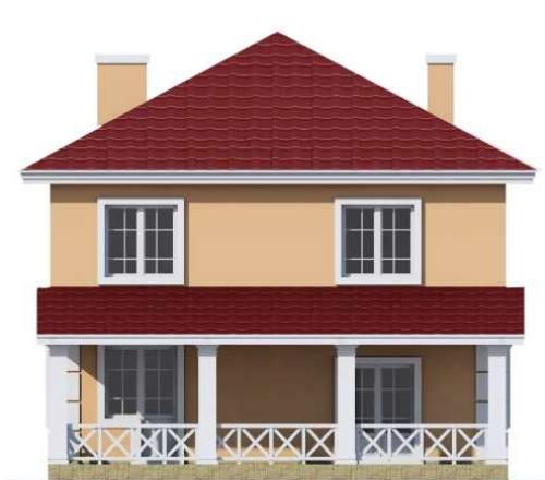 Двоповерховий будинок з повним другим поверхом. Особливістю проекту є розміщення сходів на другий поверх в готелі. Даний планувальний прийом дозволив зменшити площу транзитних коридорів. Крім того відкриті сходи є прикрасою вітальні. Будинок квадратний, 10 х10 м.