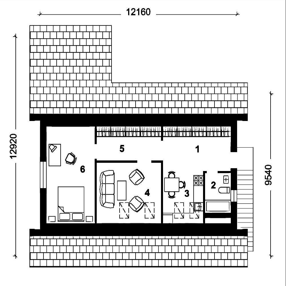 - Габарити будинку:12.92 м х 12.16 м