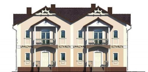 проект двоквартирного будинкуВ даному проекті Ви легко можете самостійно змінити матеріали стін на газобетонний блок або цеглу з утепленням.