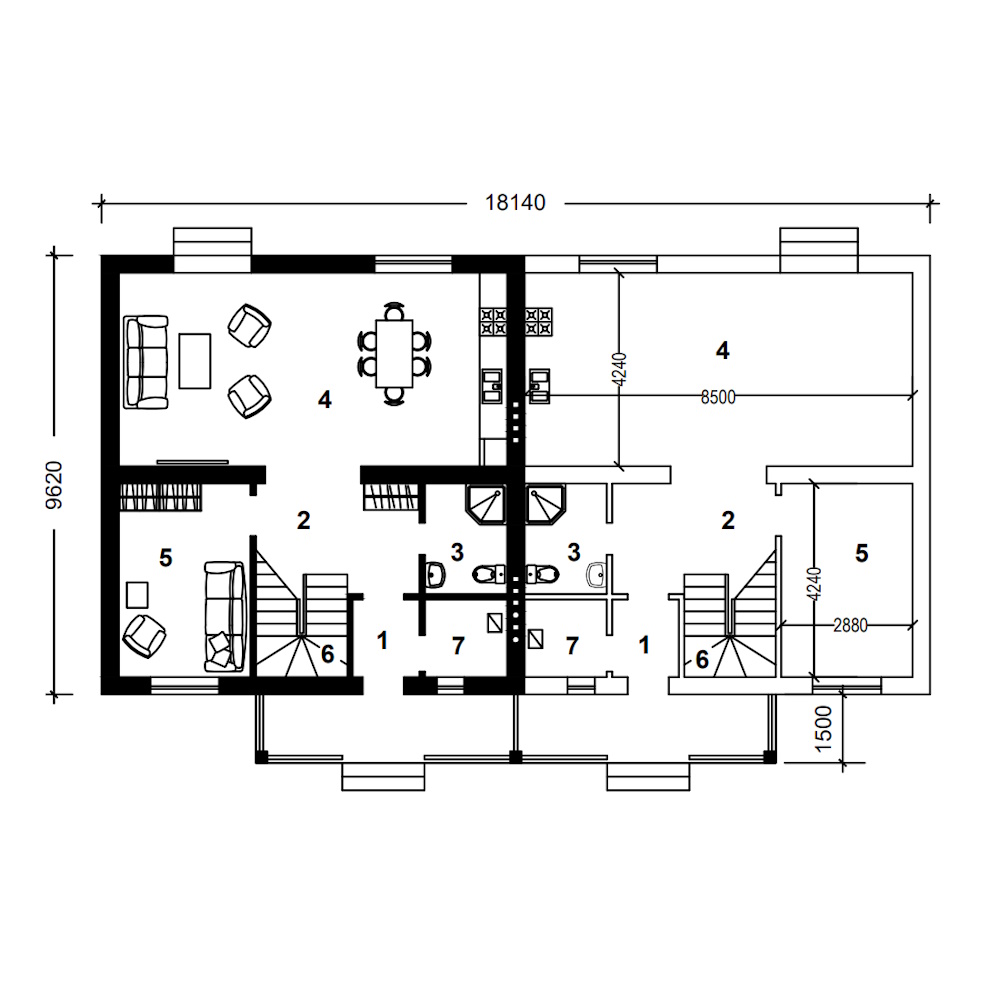 Двоквартирний будинок з чотирма спальнями: