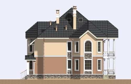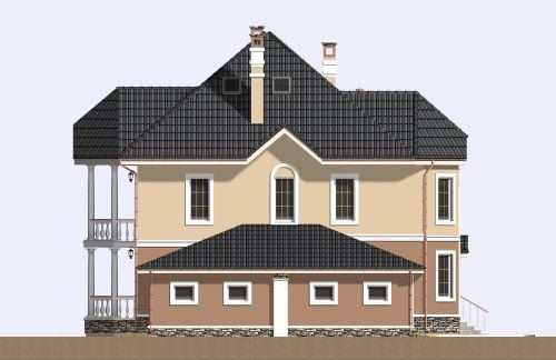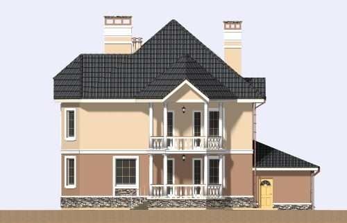 Великий проект будинку в класичному стилі з гарною покрівлею. Гараж на два автомобіля має вхід в будинок. Вітальня з каміном має возожность поділу-об'єднання з кухнею. Котельня на першому поверсі дозволяє розмістити котел на твердому паливі. Зручна спальня з еркером.