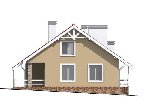 Вхід в будинок через тамбур, який дозволяє зменшити втрати тепла. Передпокій ділить перший поверх на дві частини. Справа знаходиться дві спальні і санвузол. При більшій спальні є гардеробна. Зліва знаходиться кухня-їдальня з каміном. З їдальні передбачений вихід на терасу. В мансарді розмістилися дві просторі спальні. При кожній є гадеробная. Поруч знаходиться санвузол. Содіні велику зі спалень з вбиральні можна влаштувати більярдну.