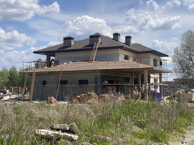 Покрівля по дерев’яних кроквах. В якості покрівельного матеріалу передбачено застосувати глиняну або цементно - пісчану черепицю. При бажанні можливо використати бітумну або металеву черепицю. Для опалення є можливість застосувати котел на твердому паливі, газовий котел або тепловий насос. Також розроблений проект опалення та проект примусової системи вентиляції. Проект опалення та примусової вентиляції у вартість проекту не входить.