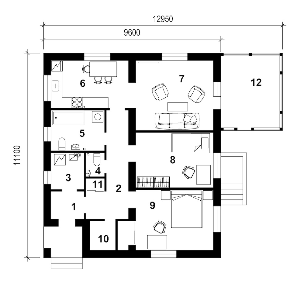 Одноповерховий будинок з підвалом на схилі. Дві спальні, кухня об'єднана з вітальнею: