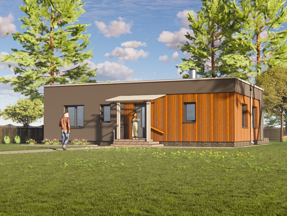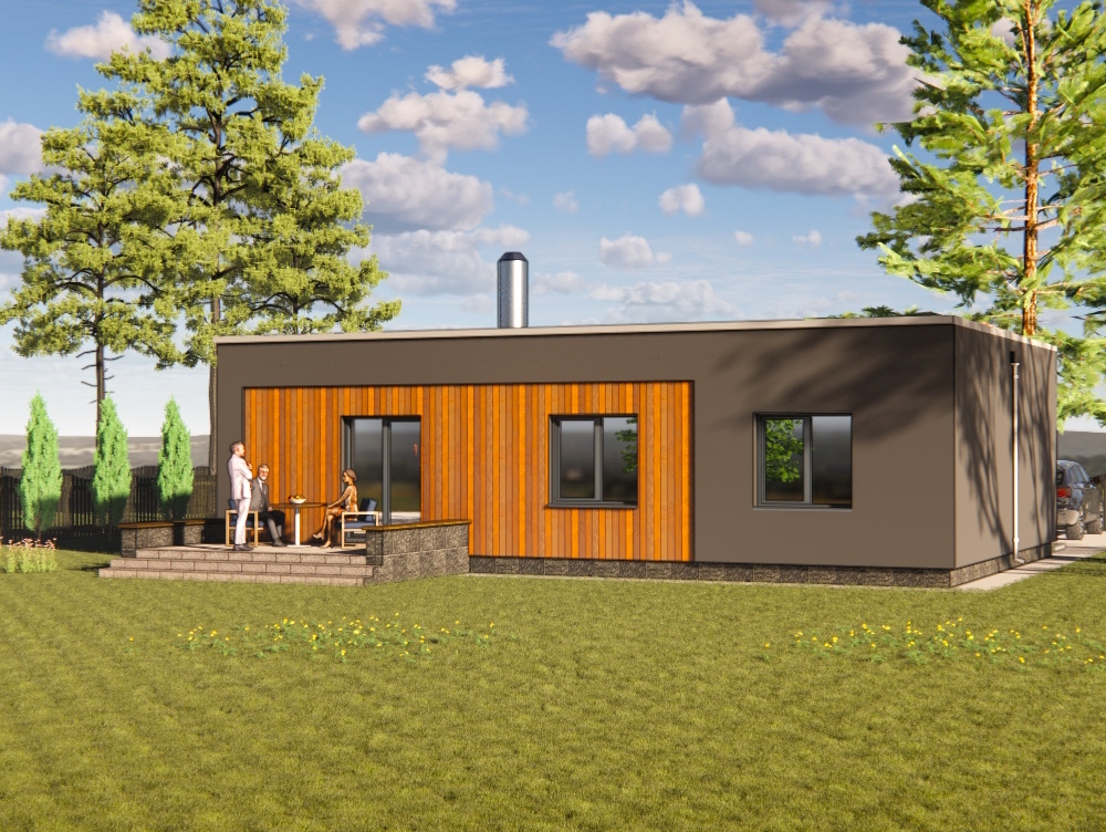 Проект сучасного будинку з трьома спальнями та терасою: