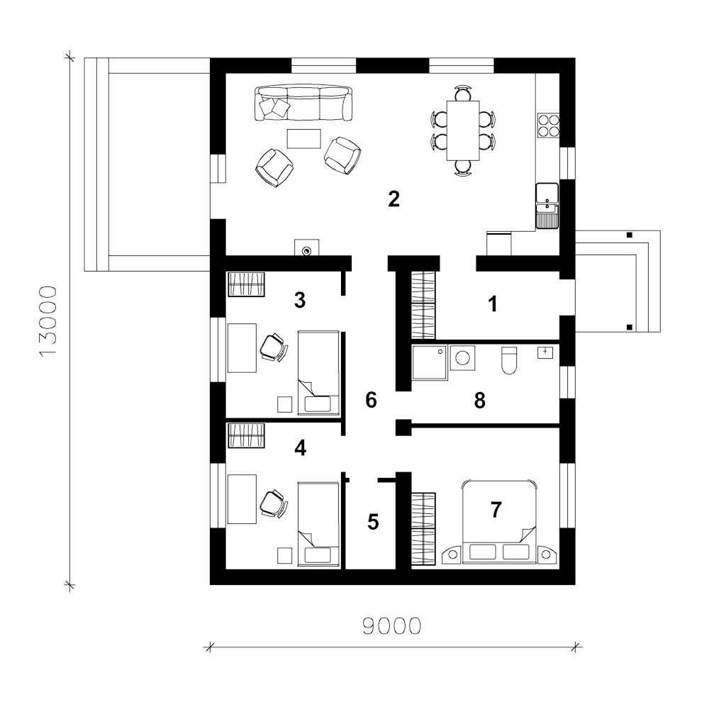- Габарити будинку:9.0 м х 13.0 м