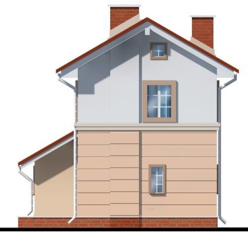 Проект двоповерхового будинку 73 м2 для вузької ділянки з двома спальнями та сауною.