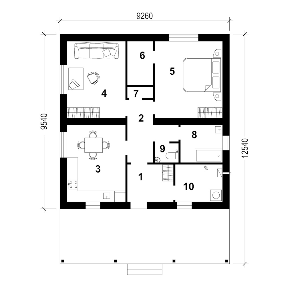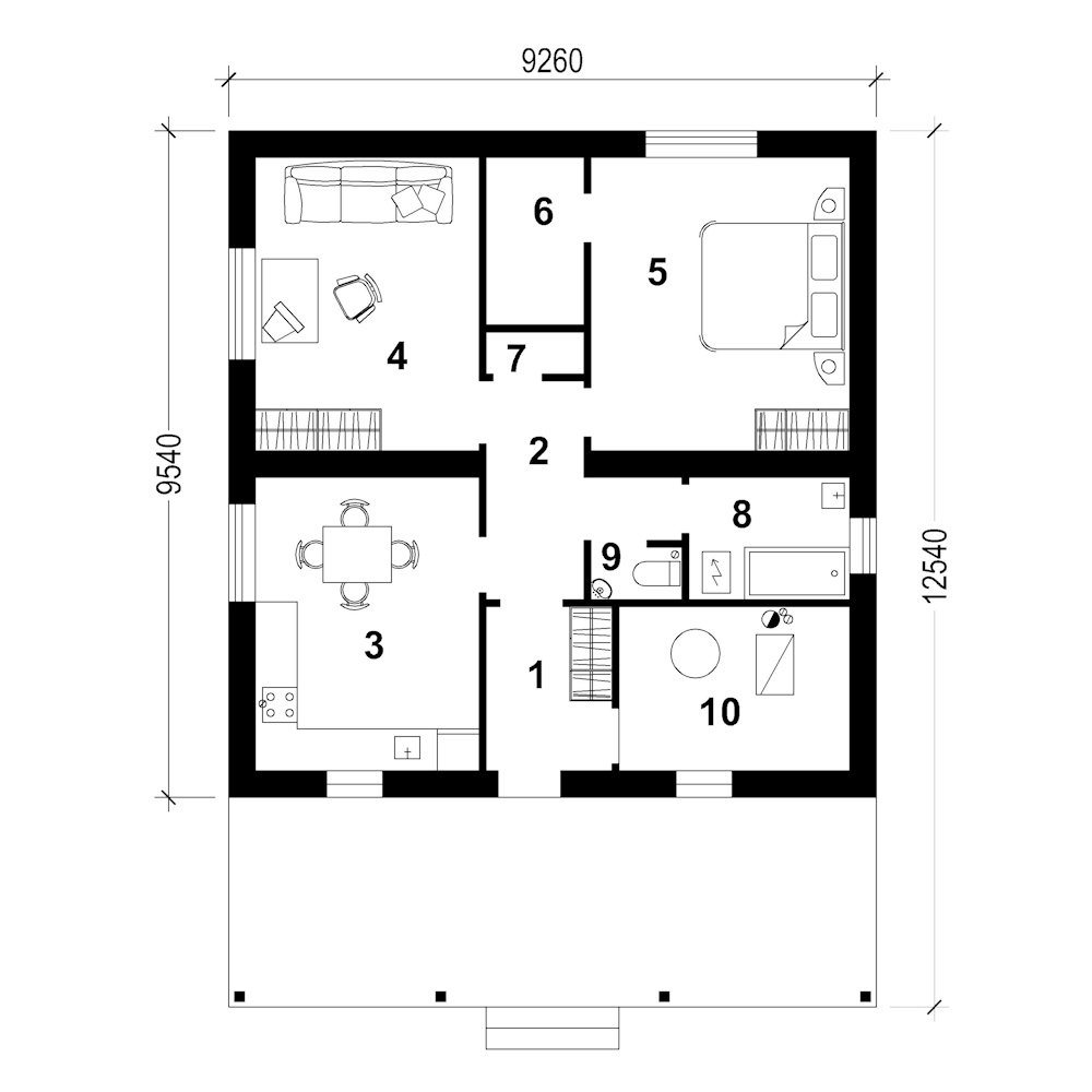 - Габарити будинку:9.26 м х 12.5 м