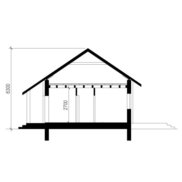 Стіни з газобетонних блоків товщиною 300 мм. Для утеплення зовнішніх стін застосовується базальтова вата або пінопласт ПСБС 150 мм. Перекриття по дерев’яних балках, покрівельне покриття металочерепиця. Можливо застосувати бітумну черепицю.