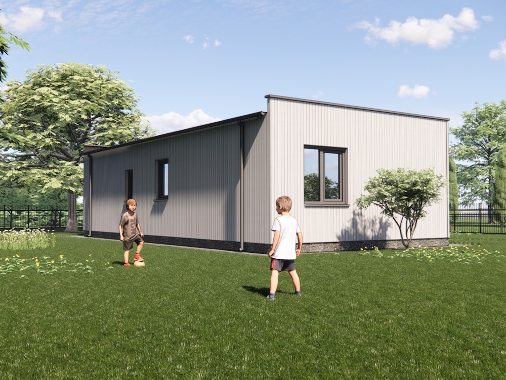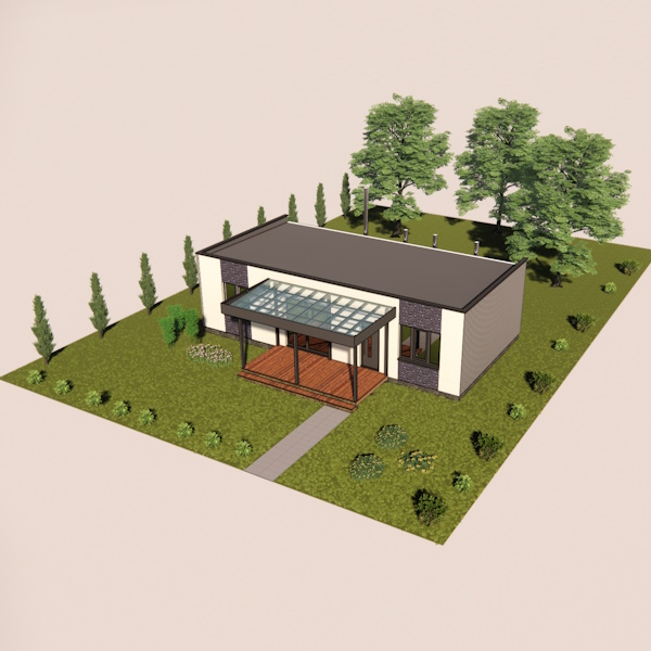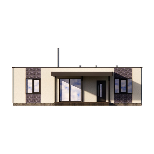 Будинок складається з тамбура, трох спалень, кухні об'єднаної з вітальнею та двох санвузлів. До великої спальні приєднана гардеробна та невеликий санвузол. У кухні передбачена можливість встановити піч або камін для аварійного опалення.
