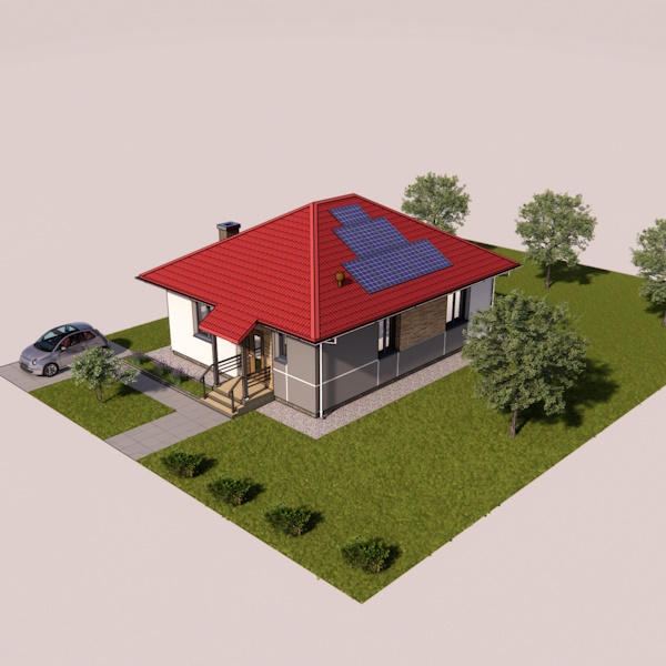 Проект "Ромашка 3" це максимально простий в будівництві невеликий трикімнатнй одноповерховий будинок розмірами 8.42 х 10.52 . Будинок має просту прямокутну форму.