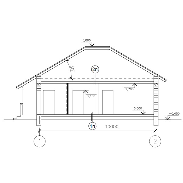 Проект складається з архітектурних креслень та креслень конструкцій. Архітектурні креслення включають в себе план будинку, фасади і розрізи. Креслення конструкцій складаються з плану фундаментів, плану монолітного залізобетонного поясу, перемичок, балок перекриття, креслень покрівлі, а також вузлів та деталей.