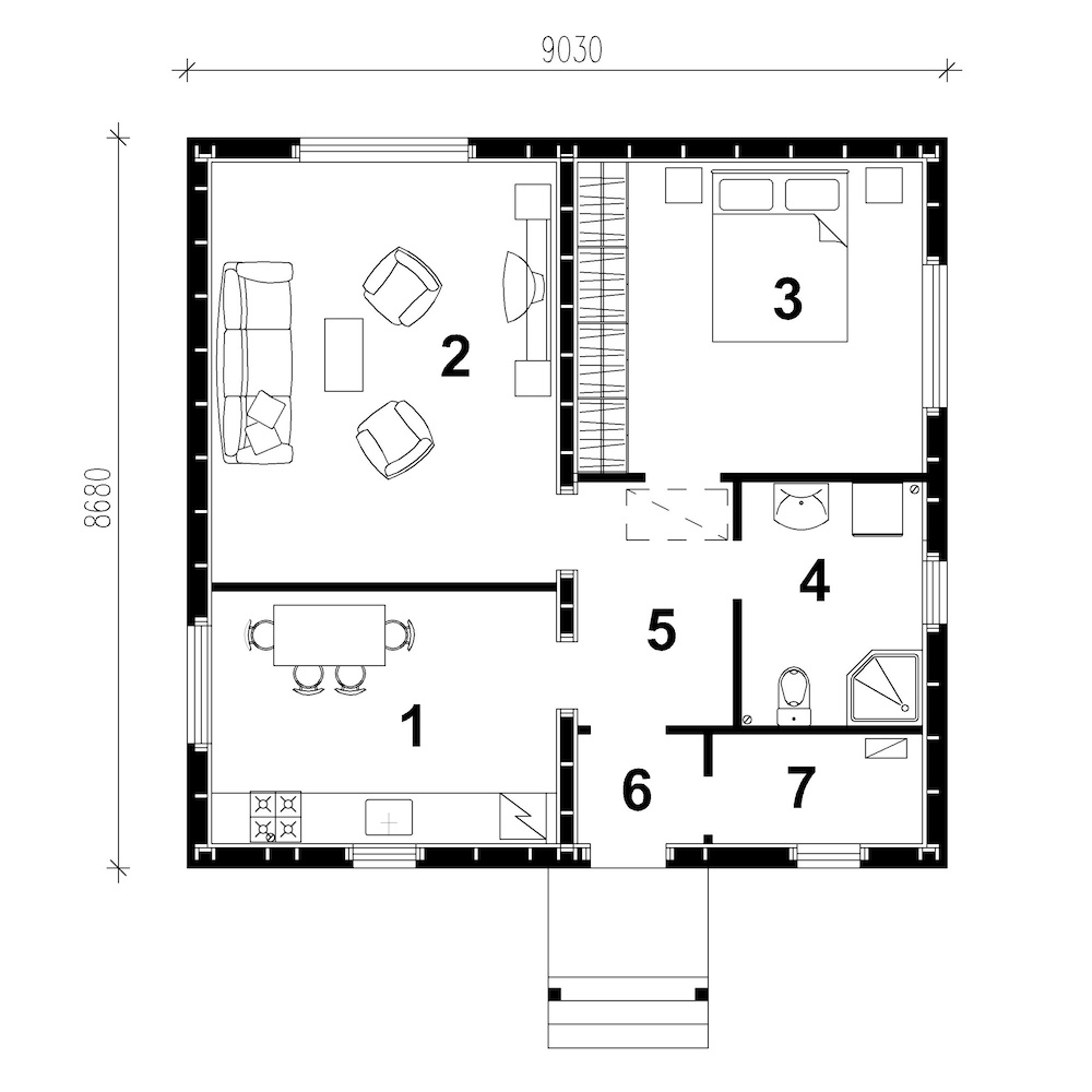 - Габарити будинку:8.7 м х 9.0 м