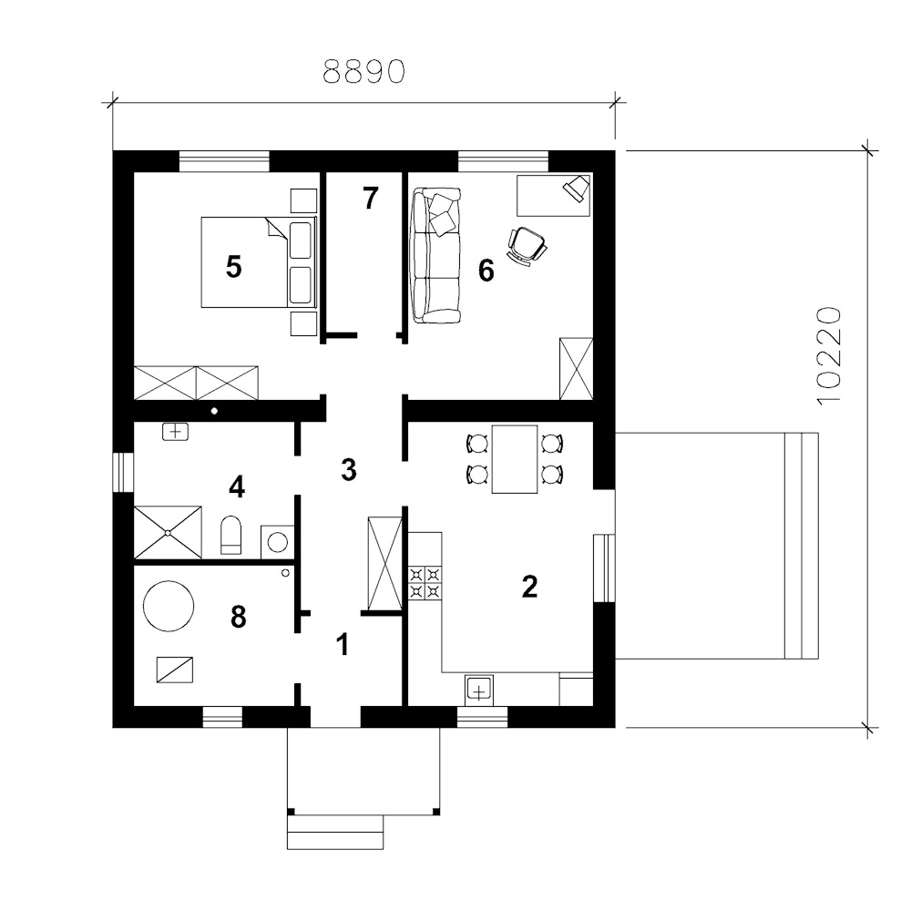 • Габарити будинку:8.9 м х 10.22 м