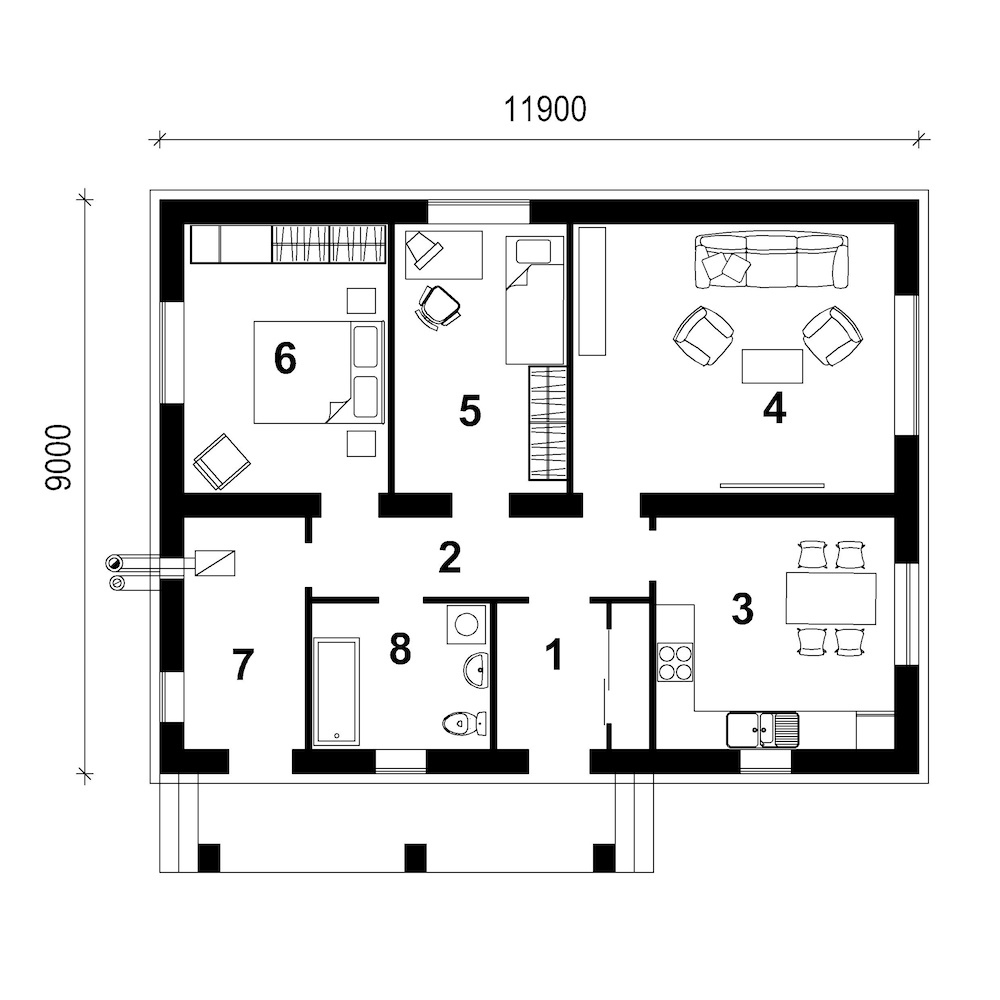 Великий ґанок дозволяє зайти як у житлову частину, так і окремо в котельню. Це вкрай зручно, якщо ви використовуєте котел на дровах чи вугіллі.