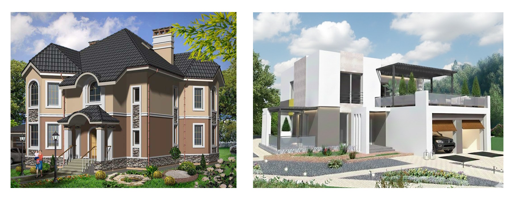 - Складність архітектури: Будинок простої форми коштує дешевше. Класика з колонами чи складний мінімалізм із консольними виносами та панорамним склінням потребують більше часу на проектування та коштують дорожче.
