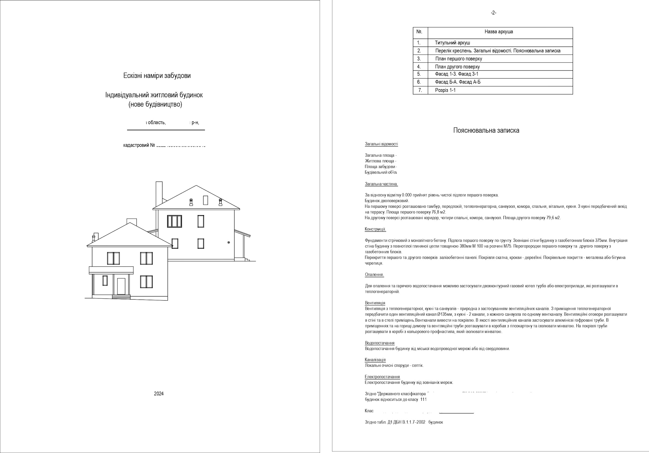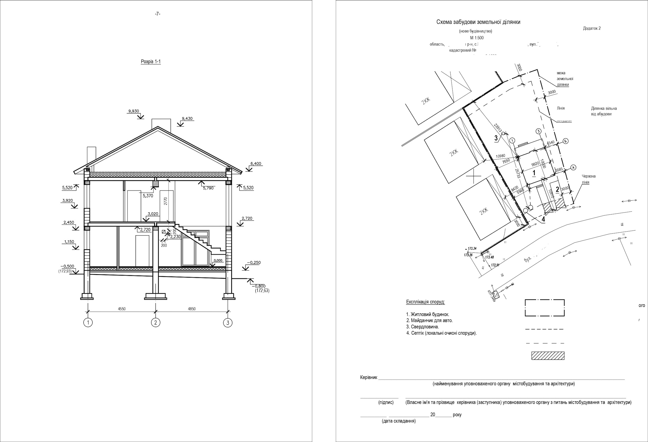 Розріз будинку. Схема забудови земельної ділянки
