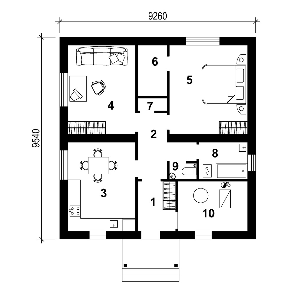 Розрахунок вартості будівництва «коробки» за проектом "Магнолія 4" — площа забудови 80 м2 (площа приміщень 69 м2). Будинок складається з двох спалень, кухні, санвузла, гардеробу, котельні.