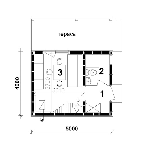 Розміри будинку будинку 5 х 4 м, площа приміщеннь 34 м2