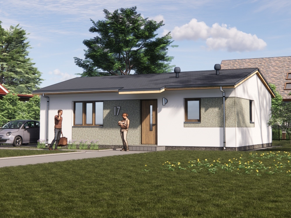 Влаштування палево-стрічкового фундаменту та бетонної основи під підлогу. Монтаж СІП-панелей зовнішнішніх та внутрішніх несучих стін товщ. 200 мм. Монтаж СІП панелей даху товщ. 200 мм. В якості утеплювача використовується сірий NEOPOR.